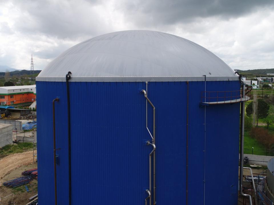 Die Tire Biogasanlage verfügt über drei anaerobe Fermenter mit einem Volumen von jeweils 10.000 m³. Das Substrat ist Rindergülle mit einer TS von 10%.